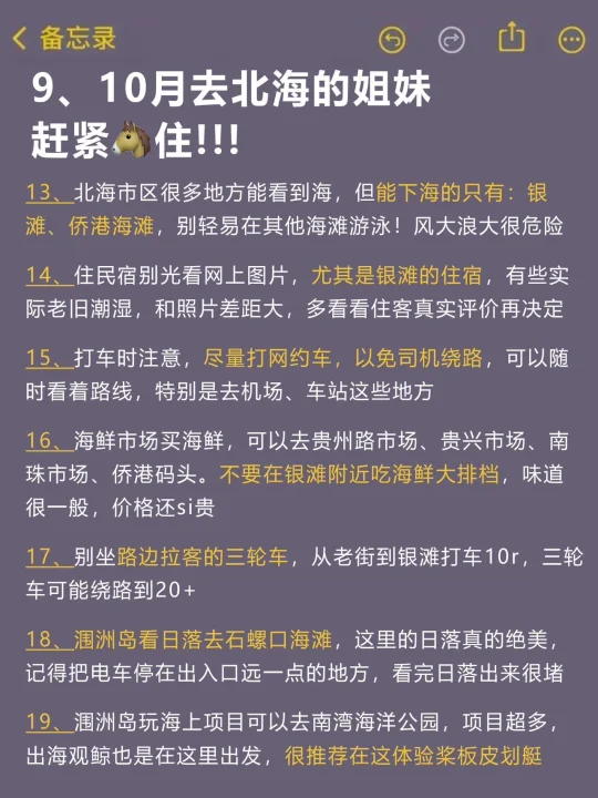 9-10月来北海的!存下吧超全的!