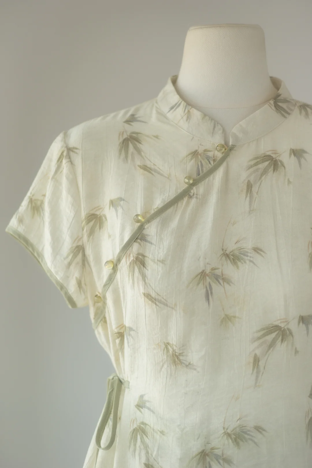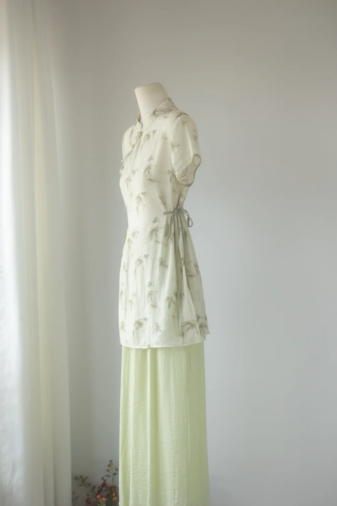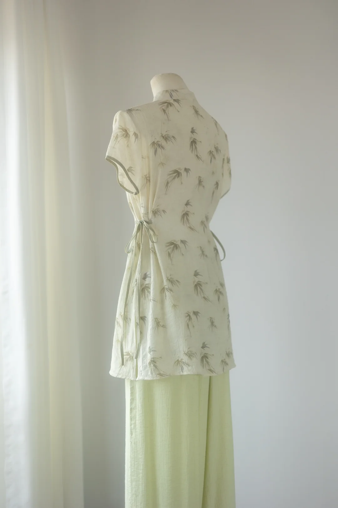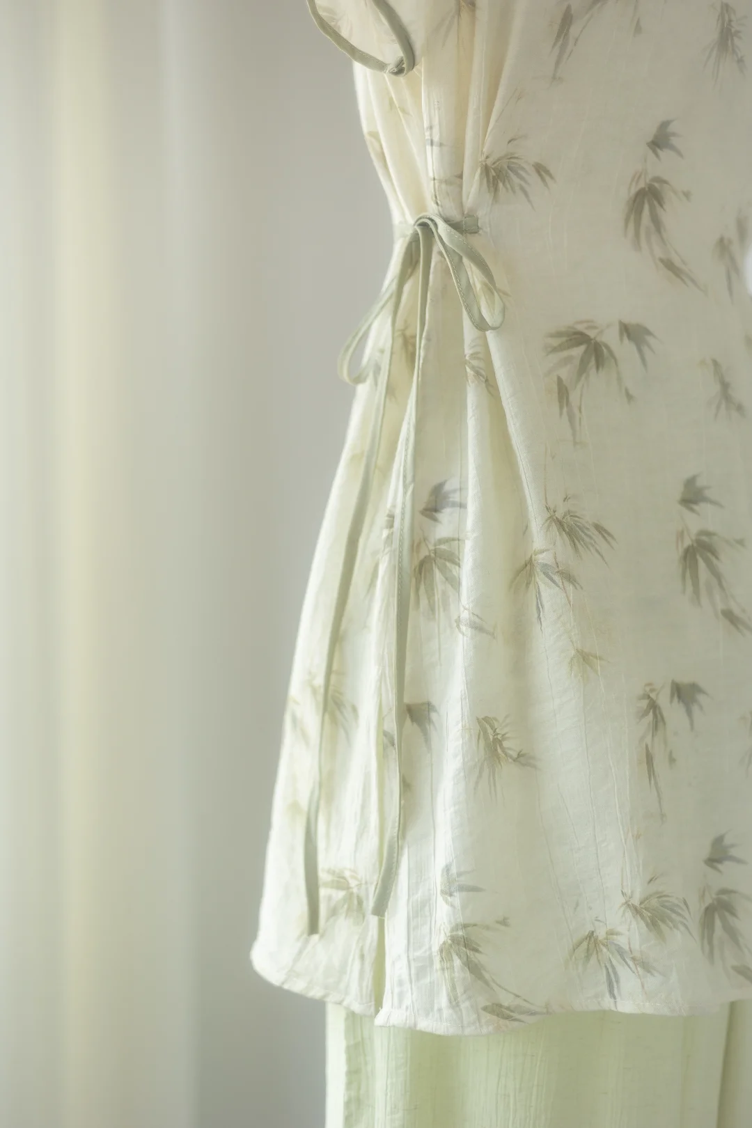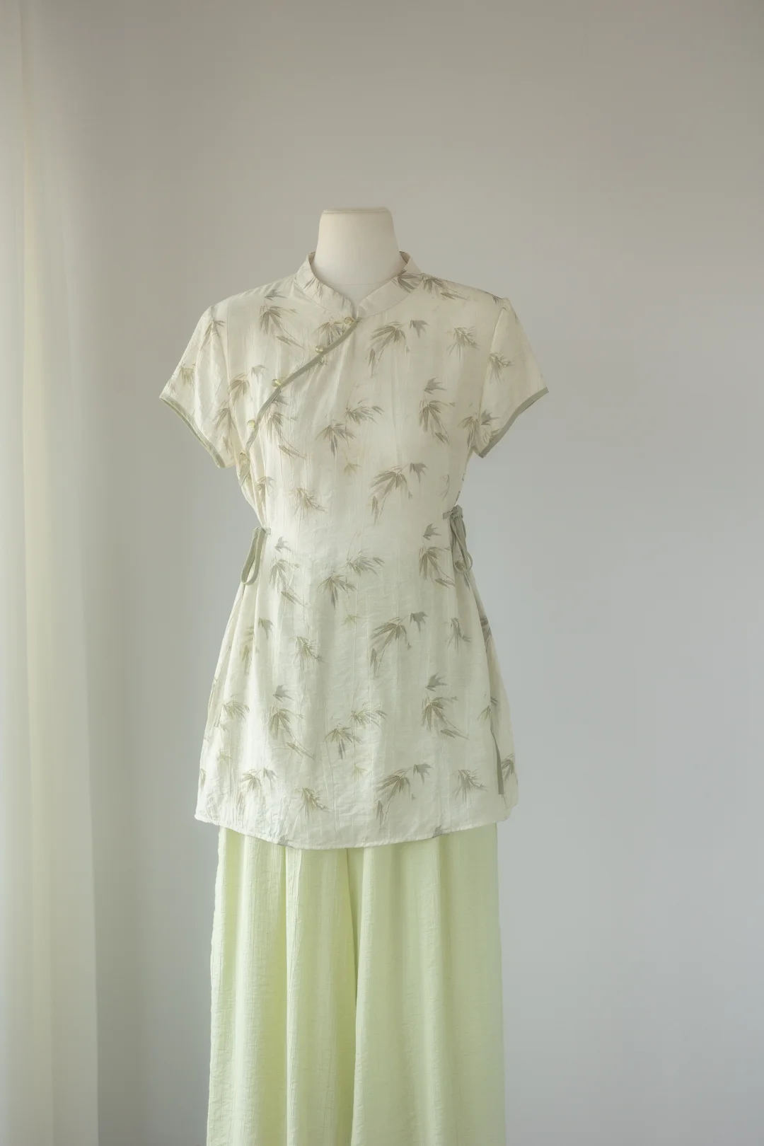 绿色同色系搭配在夏天就是视觉降温 直接变身氧气少女~ 绿色竹子清冷大方 宽松版型包容性超级好 靠系带来调整腰部维度 简直就是梨形天菜~对身材无可挑剔 搭配同色系直筒裤,裤长90左右 单穿搭配T恤也是好看的 -
