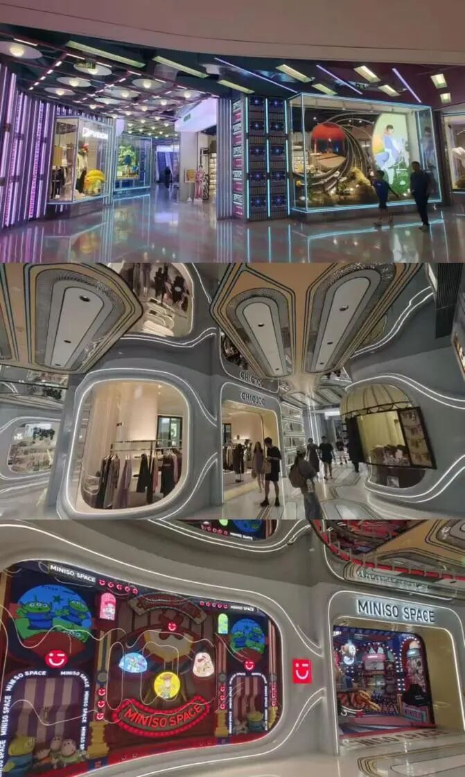 它还在二期3-6层,打造了贯通四层的“艺术商业市集”。四层空间分别被赋予了“异次元新境”“超现实海域”“霓幻未来城”“游影卷间集”的主题,艺术装置、潮流首店、手作工坊、特色小食无缝融合,让消费者的身份,从“购物者”变成了“探险者”,大大拉长了停留时间。