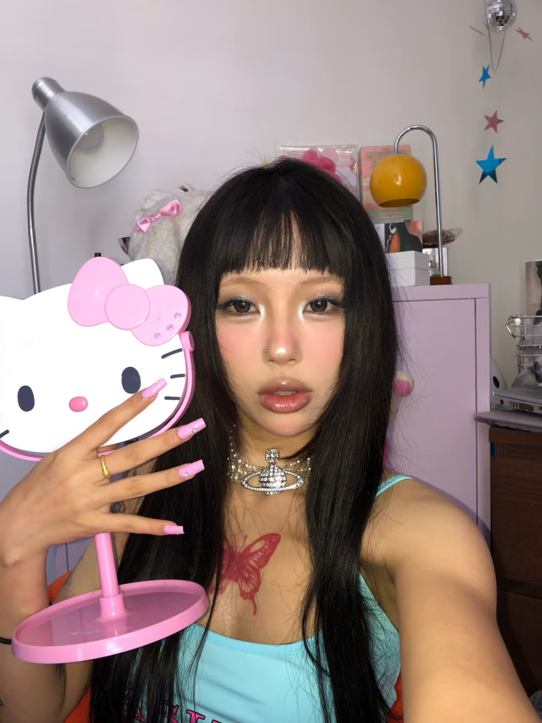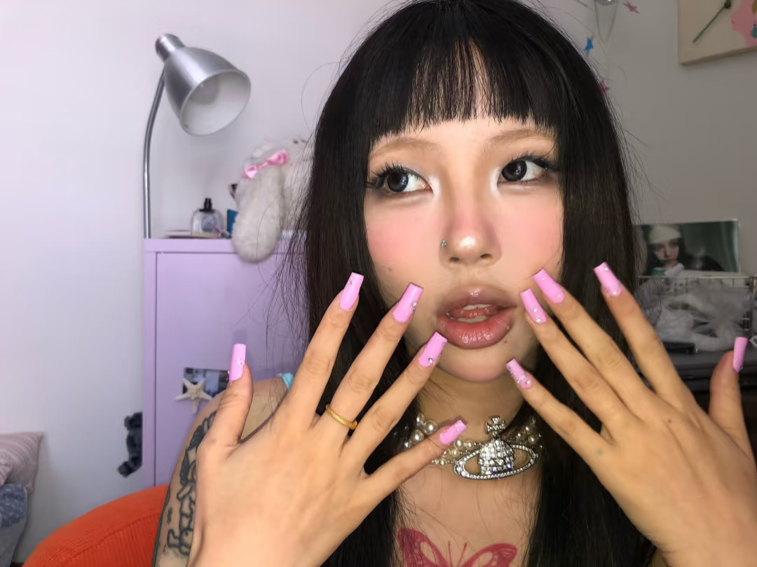 又自己做了三个小时 拍了十万张 真的学不会漂亮的建构 但是这个颜色超漂亮💅 美甲 电子y3k 妆个新人设 y2k y2k美甲 美甲长甲 辣妹美甲