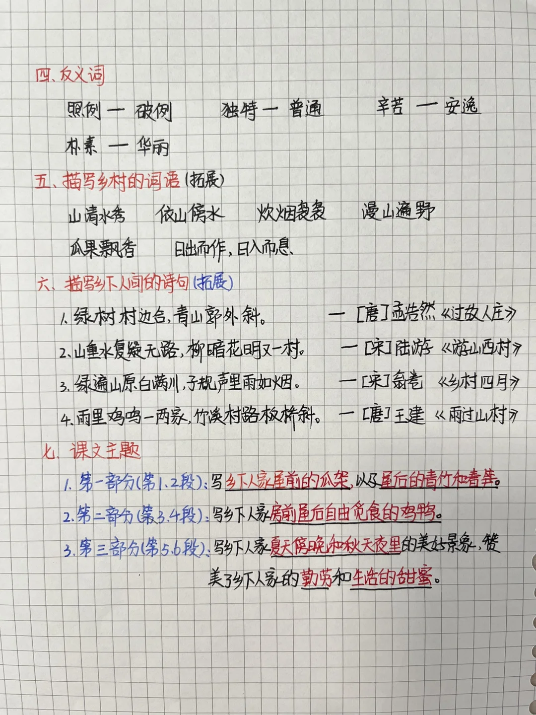 四年级语文 四年级语文下册 知识点总结 小学语文乡下人家