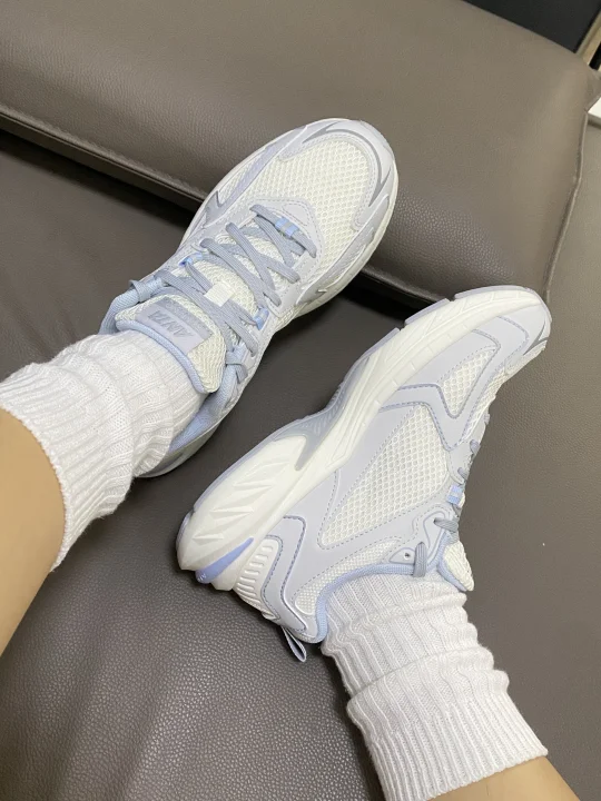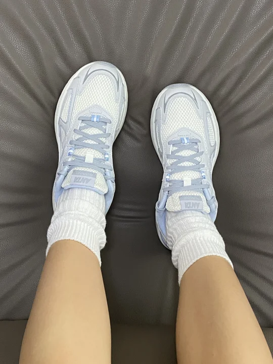 好喜欢这双奶蓝色安踏运动鞋 上脚又轻还有回弹呢 搭配运动裤蛮不错嘞