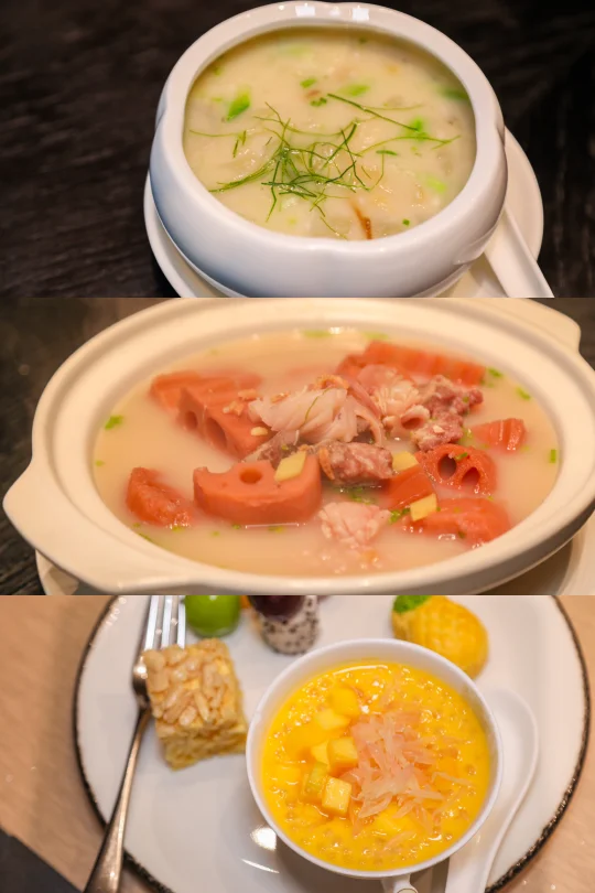 晚餐在品聚餐厅,就像是一场舌尖上的岭南盛宴。点了【四人享味套餐】,从三式萝卜拼爽脆、素鹅裹香的迎宾彩碟,到鲜香暖胃的黄鱼羹,再到烧味拼盘、鲜嫩老虎斑,每一道菜都让人赞不绝口,最后以沙琪玛、凤梨酥、杨枝甘露等岭南甜品收尾,完美!