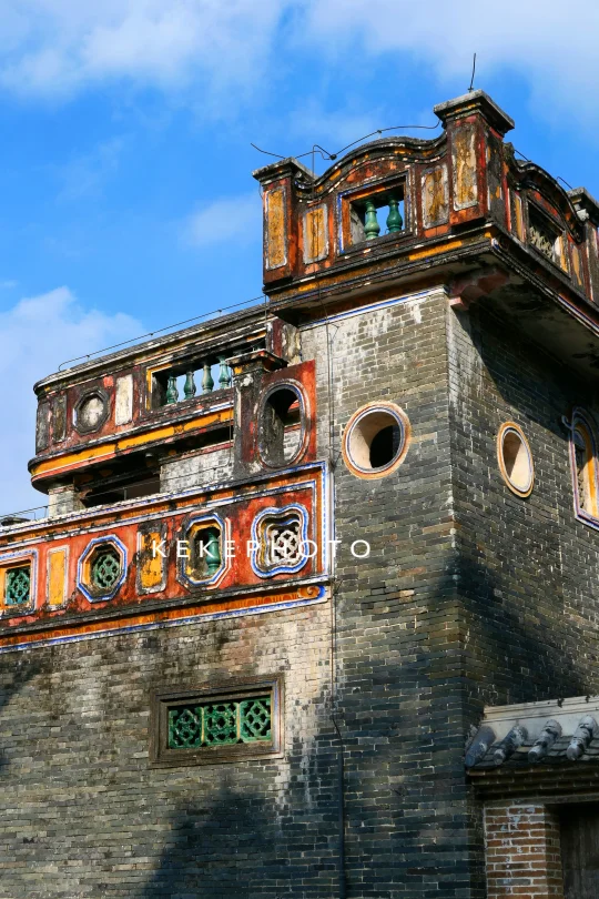 防御性设计:宅院四角设有高耸的炮楼,墙体内嵌射击孔,二层设有瞭望台,使建筑整体犹如一座坚固的城堡,反映了动荡年代富商对家园安全的考量。