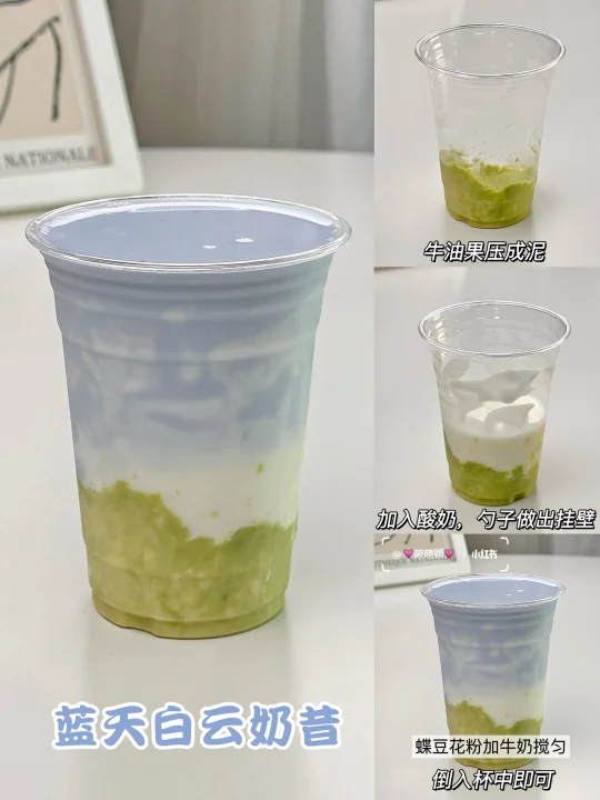 分享几款简单又好喝的奶昔搭配! 口感细腻丝滑,健康低卡,饱腹感贼强! 2分钟搞定!早餐搭配鸡蛋、面包等就是元气满满的一餐! - ✅香蕉可可奶昔 ✅蓝天白云奶昔 ✅蓝莓酸奶奶昔 ✅芒果酸奶奶昔 ✅牛油果酸奶奶昔 ✅火龙果酸奶奶昔 - 🌈具体做法都在图片里啦!有问题欢迎举手提问🙋🏻♀️期待你们交作业噢!