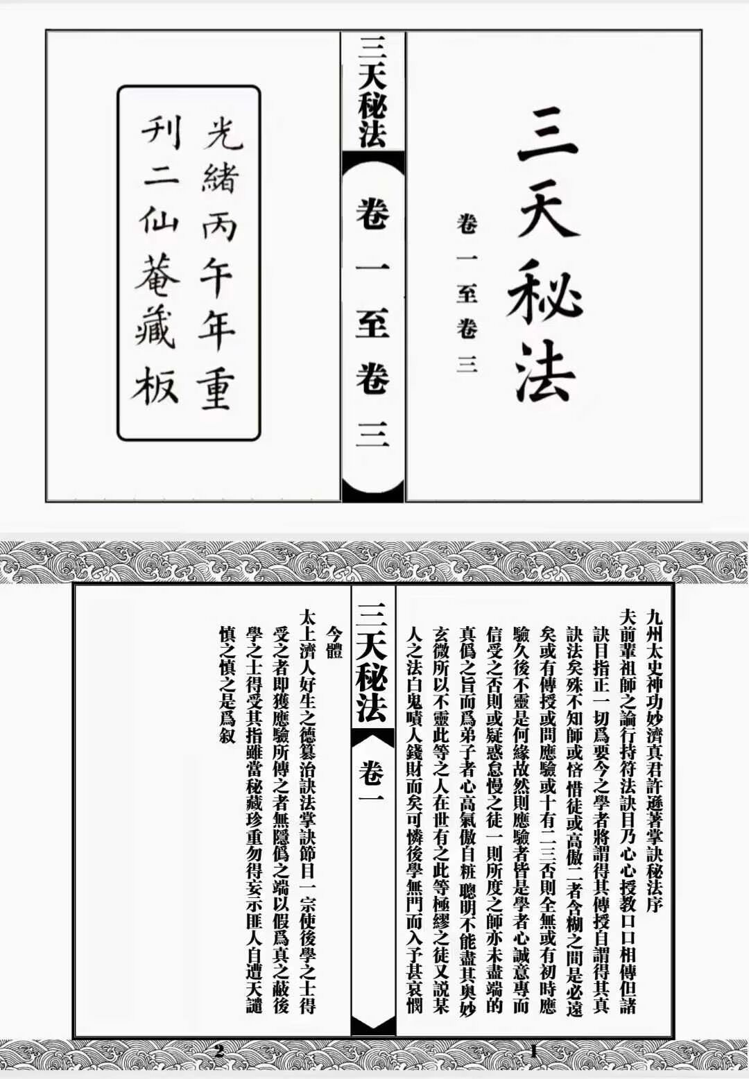 泛黄纸页凝霜雪,百年秘典蕴雷霆——光绪年间二仙庵藏版《三天秘法》重磅现世!七卷350页全本无缺,墨香里藏着道教文化的千年密码,带你走进古人的精神世界。