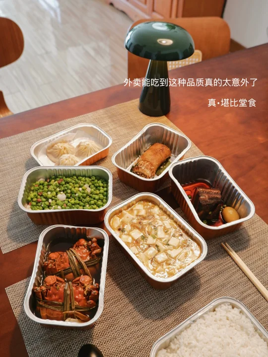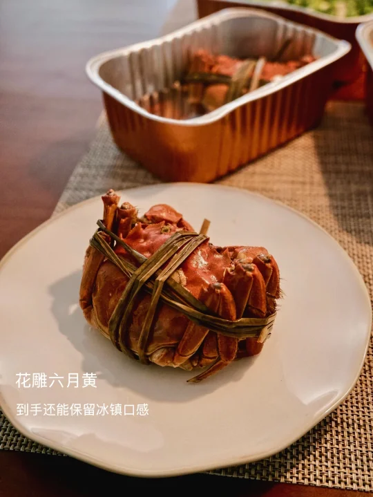 这次点的是天伦里,黑珍珠餐厅,拿手好菜是蟹粉豆腐和花雕六月黄🦀。新鲜蟹肉+嫩滑豆腐结合,入口即化。每只蟹鲜甜肥美,花雕味很香醇。这家每到蟹季,餐厅预约十分困难,常常大排长龙。好在现在外卖也能点到,省了不少时间。
