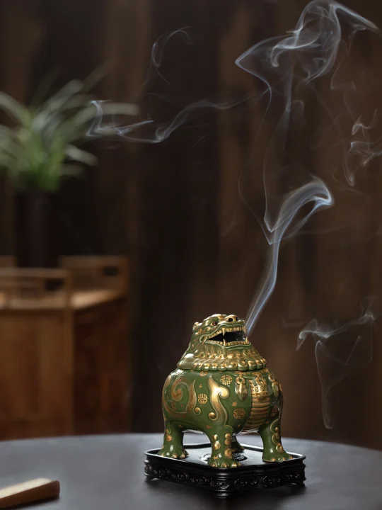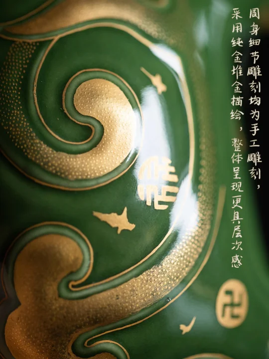 神兽甪目明心澄,通四方言语,只伴明贤之君,纯金堆叠出鳞甲辉光,绿釉沉静如深宫碧玉,御窑高温淬其魂骨,曾是明清士大夫阶层的身份暗语。
