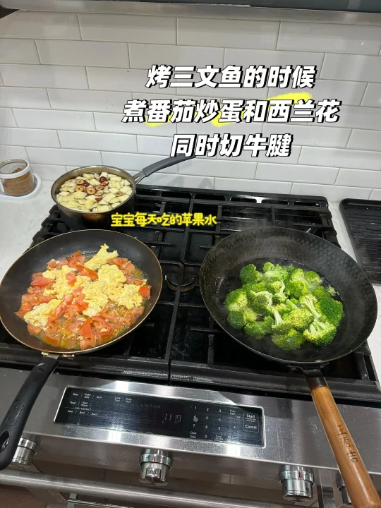 烤上🍣之后,先炒鸡蛋和番茄,加上水后煮就可以做水煮菜