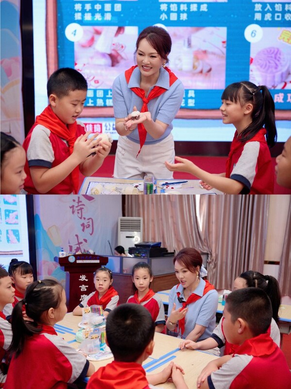 在学生们清洁双手后,也深刻意识到"一双干净的小手是重要的健康第一步"。现场随即迎来了"敬师恩,送安康"学做月饼公益体验活动,李文利女士带领学生们共同完成揉面、包馅、压模等月饼制作步骤,还用香皂制作了富有创意的皂雕月饼,在动手实践中提前感受中秋团圆氛围,也在互动交流中传递公益温暖。孩子们在欢乐的实践中,直观体会到健康卫生习惯的重要性。这一课堂让健康理念以更生动、更贴近生活的方式深入人心。