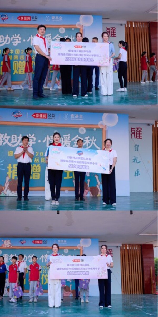 岳阳楼区委书记曾平原在活动中强调,此次公益活动为地方教育注入新活力,并充分肯定了舒肤佳与李佳琦公益团队的善举,呼吁更多企业及社会力量参与,惠及广大师生。在区领导见证下,舒肤佳与李佳琦公益团队向教师代表捐赠了健康守护物资及送上了教师节礼物,并向家庭困难学生和低收入家庭学生发放助学金,同时为优秀学生及学生干部赠送含洗手液的开学礼包,以多元方式支持教育、关爱师生。