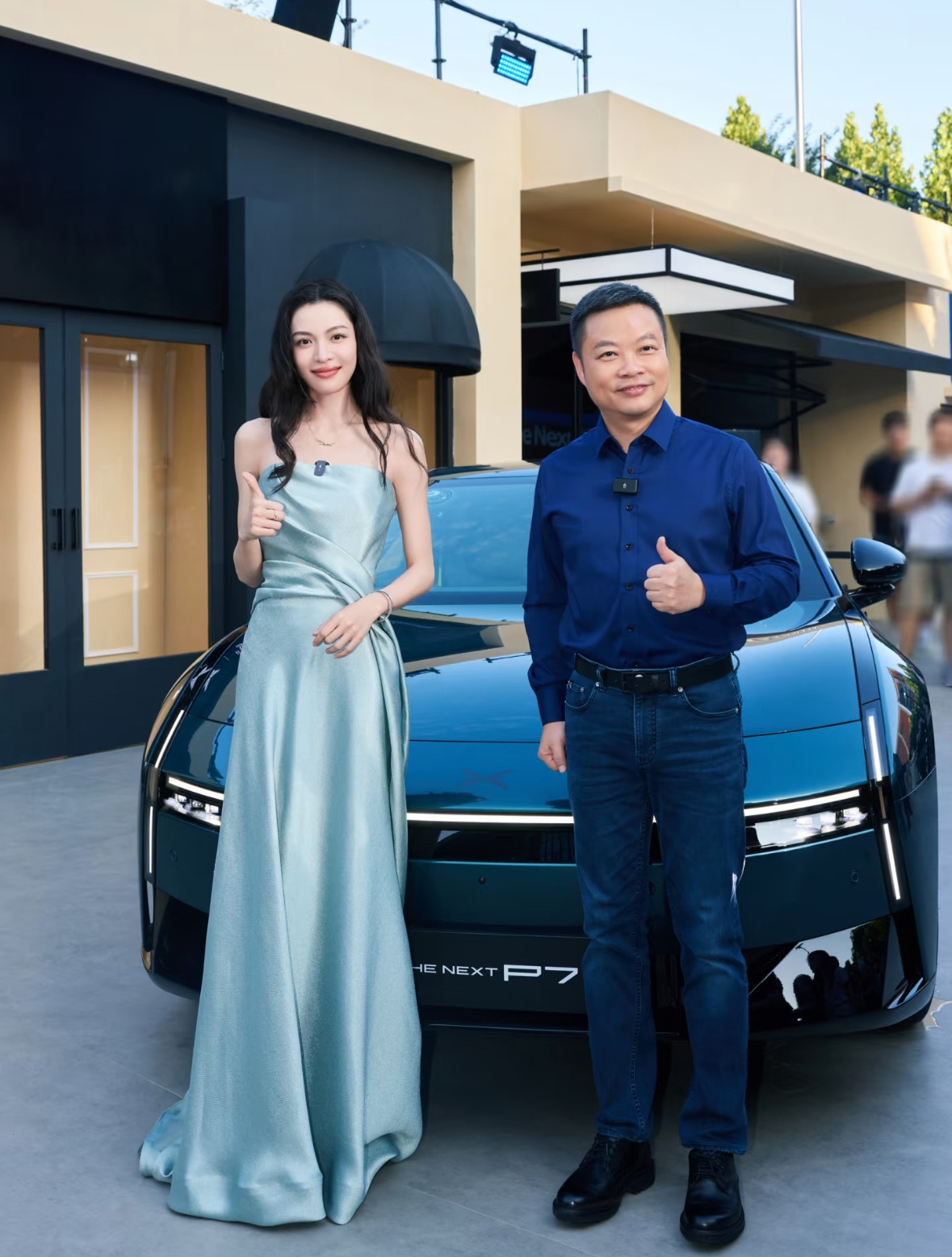 钟楚曦绿裙 她真的对绿色情有独钟,难怪选车也选了全新小鹏p7星瀚绿