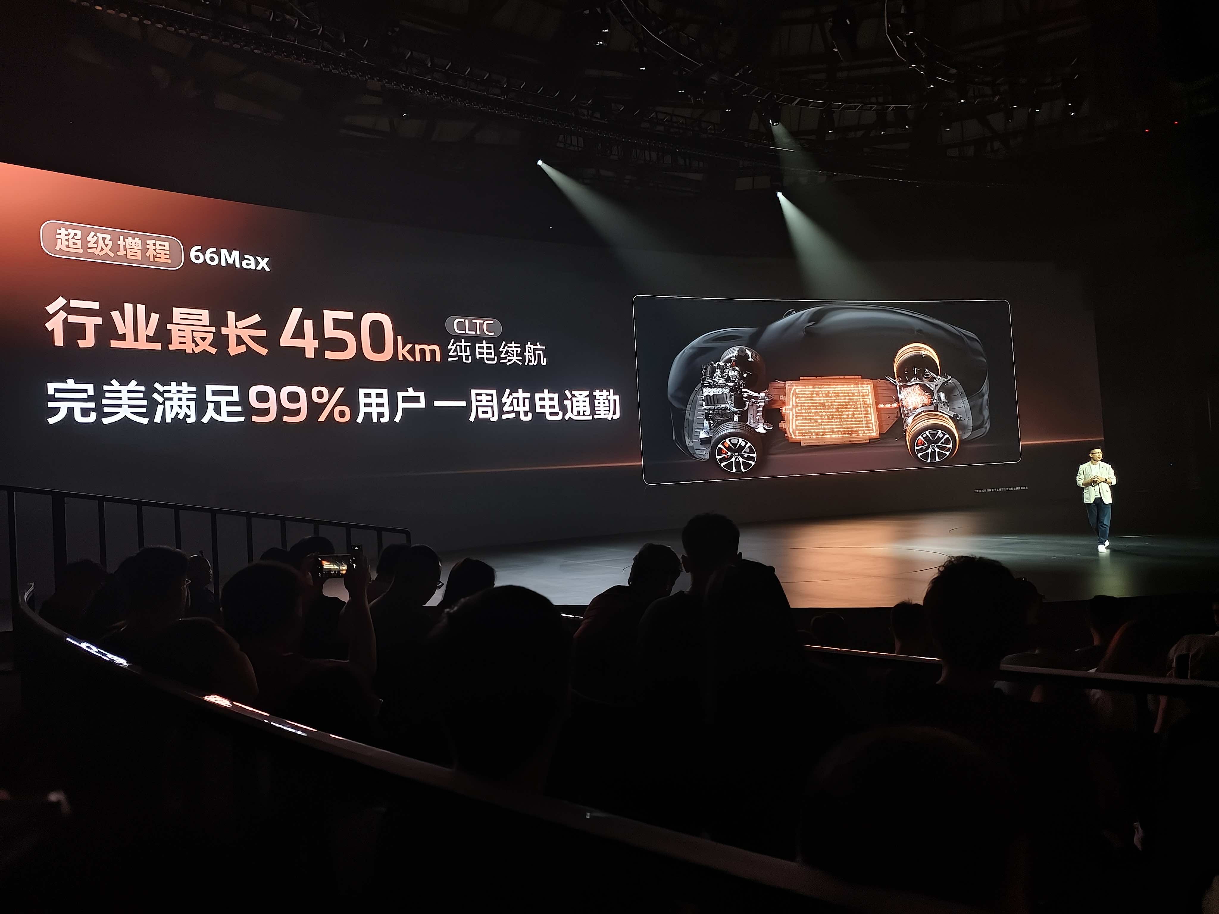 就以续航来说,超级增程66 Max,搭载了宁德时代66度超级骁遥MAX电池,具备450公里的纯电续航,仅凭纯电就能满足一周通勤,更有800V超快充快速补能,轻松拥有1500km超长续航,百公里综合燃料消耗量更是低至0.06L。
