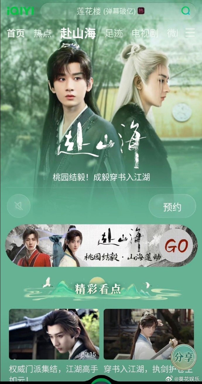 赴山海今晚18点开播,腾讯爱奇艺双平台专栏,成毅这影视号召力好牛,接这部剧大爆特