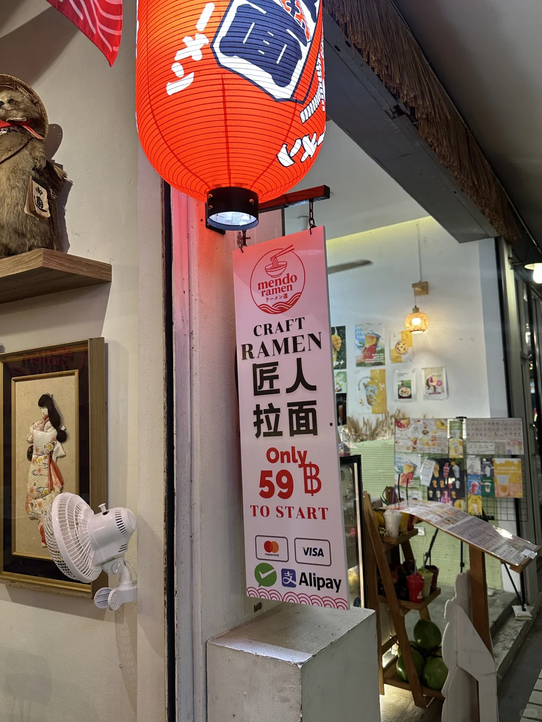 在清迈生活了一个星期 深深感受到了清迈的物价比曼谷底20% 59株就可以吃上一碗正宗的日式拉面 📍Mendo Ramen 这家在老城附近 Mendo Ramen Kad Klang Wiang กาดกลางเวียง 店铺不大 在一个小商业区里 附近有伴手礼店可以逛 也有很多寺庙 从塔佩门走路就可以到哦 .