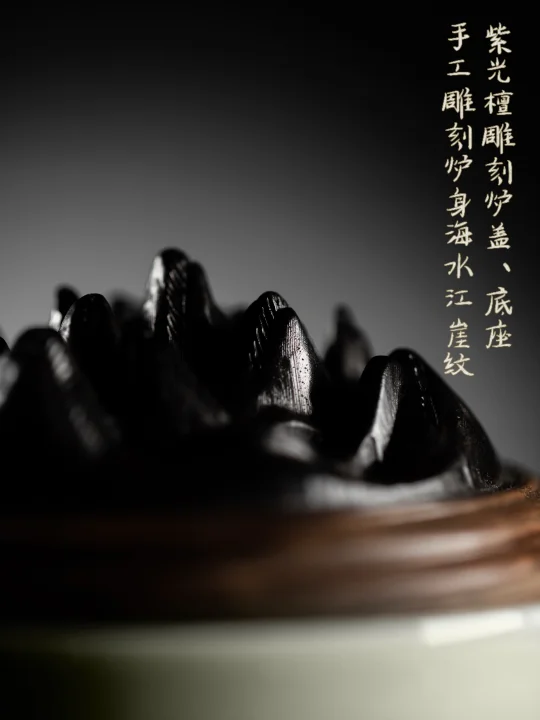 海水江崖纹托起开阔气象,烟如云海翻涌,气势绵长。此炉体量敦厚、扩香悠远,以氤氲香气界定待客之境的从容与大气。