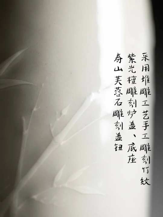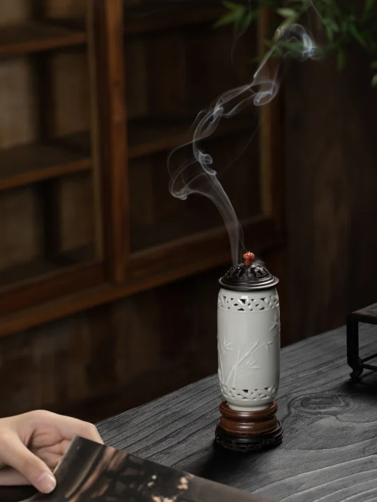 竹节堆雕衬出清峻风骨,烟线垂直如墨痕悬纸。纤长炉身聚香成束,伴你读写沉思,辟出一隅澄明气场。
