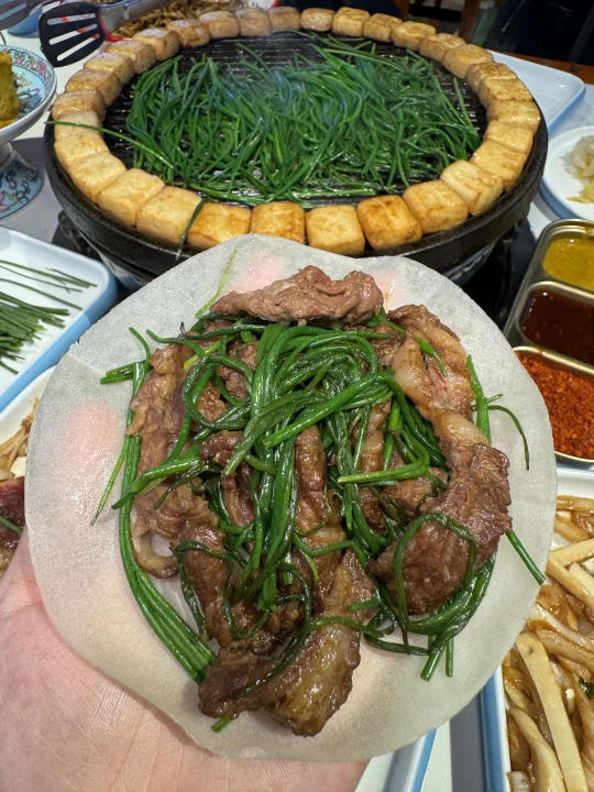 沙葱到底是谁发明的啊!!真的好好吃啊😭 这家北京开过来的炙子烤肉~已经三刷了!!! 每次饭点都坐满了人,地铁口出来就能看到很方便 - ✔️炙子烤肉✔️沙葱牛肋条✔️老北京酸菜✔️奶皮子 蘸上店里特制的酱料 真的很像😭 沙葱真的是好吃到打包带走的程度 还吃到了老北京的臭豆腐炸窝头!! 真的有点上头!!下次还要去 -