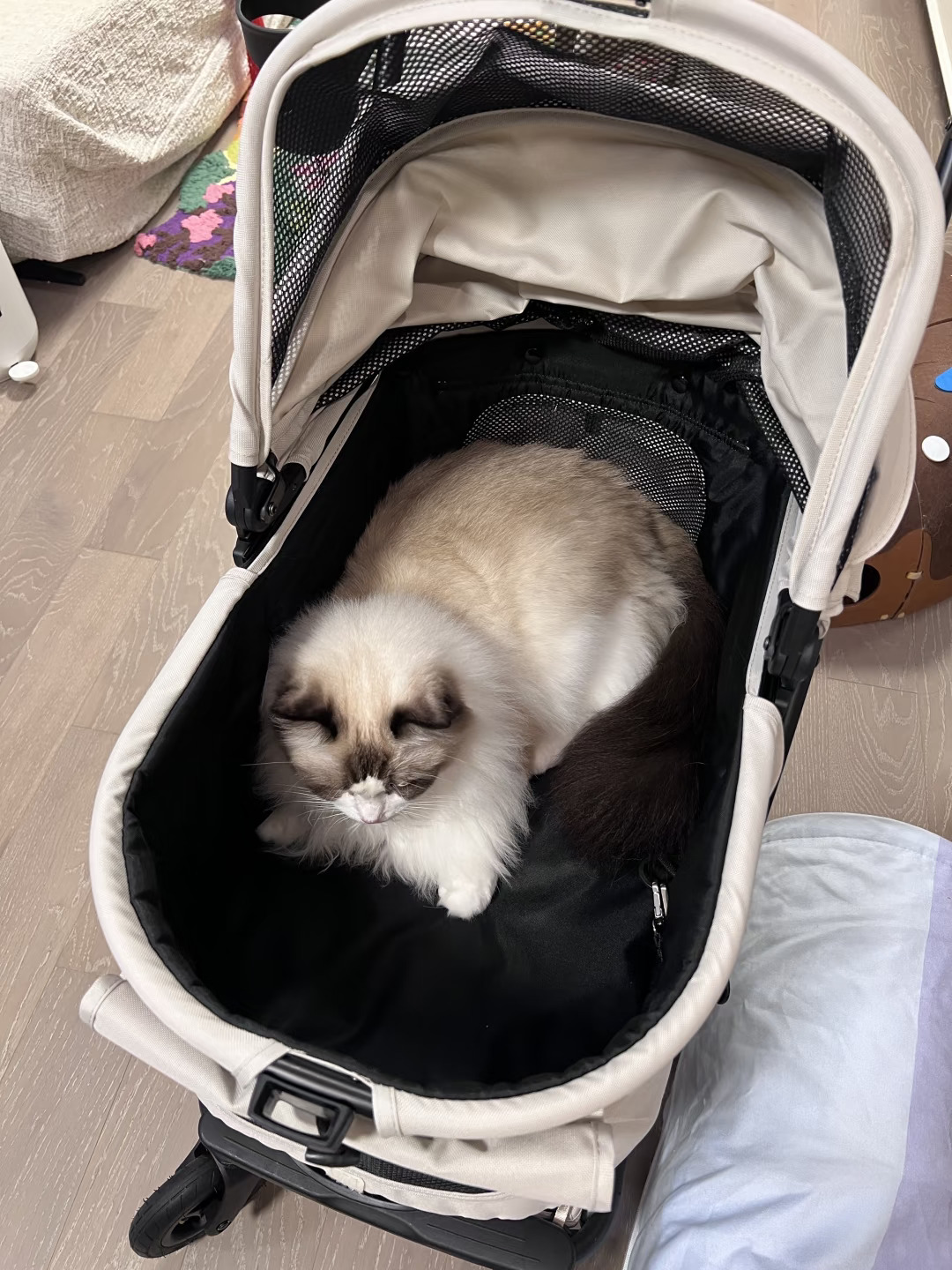 3. 底部篮子储物空间和承重足够(旅游可以放猫砂)