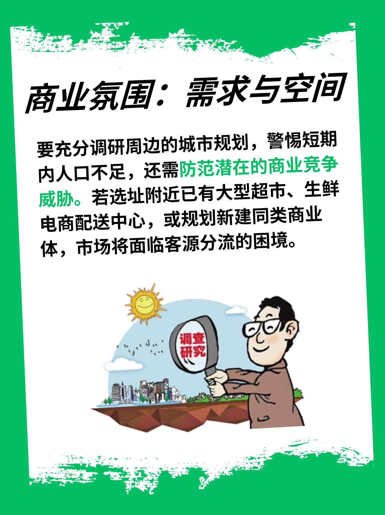 一、人口密度:要贴近大众 二、交通便捷:可轻松到达 三、商业氛围:需求与空间 四、其他因素:全方位考虑 五、运营管理:升级与优化