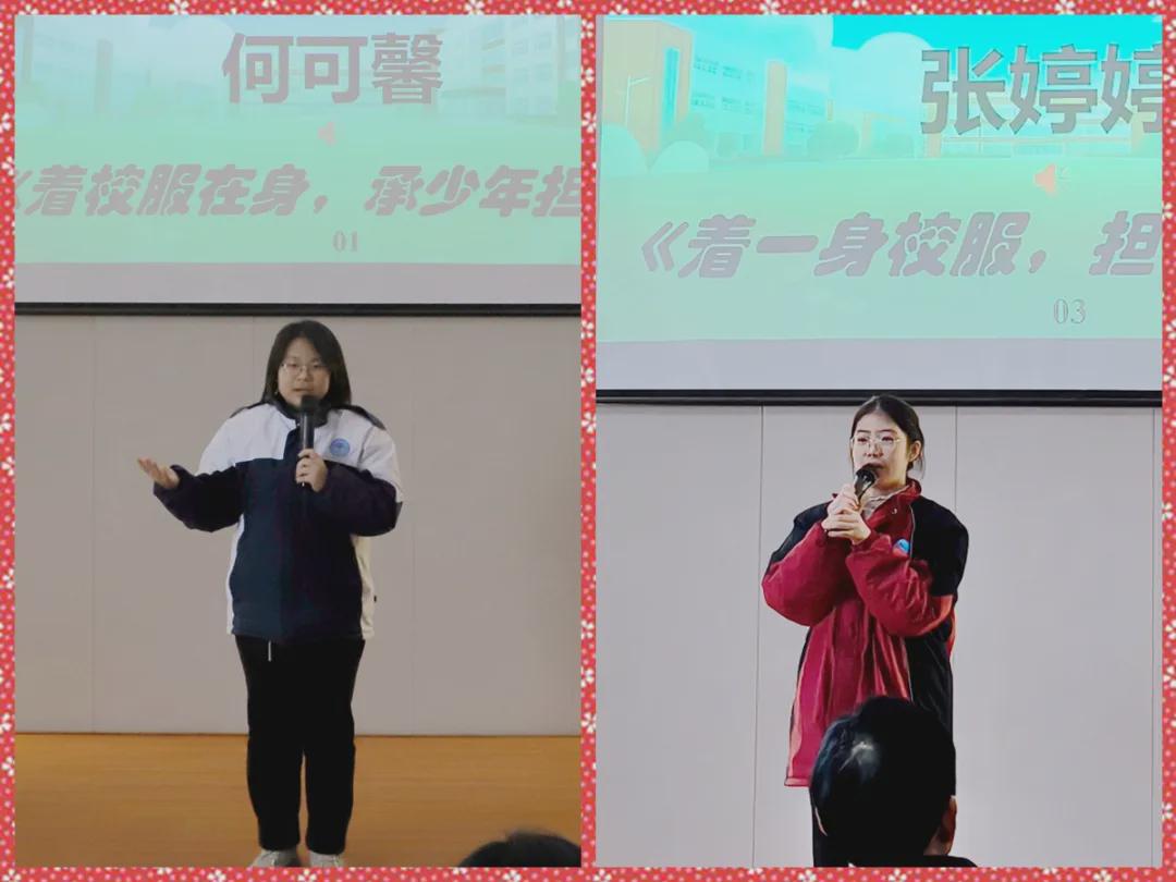 丁镇书记在致辞中勉励选手们牢记“言为心声、行胜于言”的准则,以校服为纽带,把对责任的体悟、对集体的眷恋和对青春的思考融入演讲之中,用鲜活的事例、真挚的情感展示担当二字的深刻内涵。她向同学们提出三点希望:一是以校服为镜,涵养担当品格;二是以行动为笔,书写青春答卷;三是以理想为帆,锚定奋斗方向。