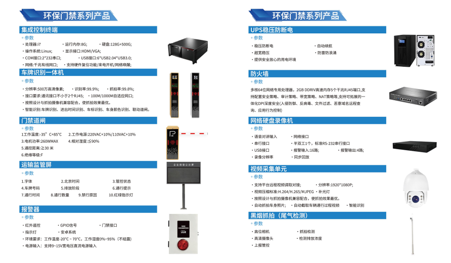 2.产品矩阵与硬核配置物微联环保门禁全套硬件均为工业级配置,核心参数严格贴合产品规范,适配各类复杂工况,全系产品完成升级优化,核心硬件参数如下: