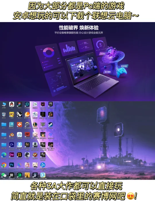 平台:Pc ✅ & Android ✅ & Steam ✅ 正常的恋爱固然健康! 但是畸形的恋爱更加精彩😍! 虽然大部分都是Pc端的游戏,但是大家想用安卓玩也有办法,推荐大家可以下载个联想云电脑,不仅可以低成本爽玩各种大作,而且帧率保持非常稳定,甚至在办公设计上也是好帮手~