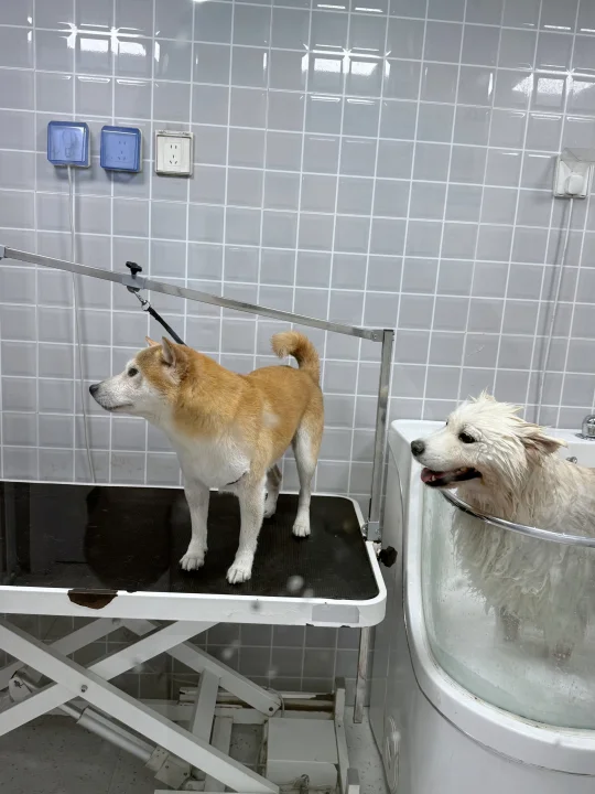我们在这家洗澡店消费了三次,每次都洗的很香香,在找到这家店以后,我又像以前一样漂亮,简直是年轻了十岁。而且老板每次都用小车接送我们,非常方便,所以妈妈立刻办了洗澡卡。她一直坚持认为,生活再艰难,用心和用智慧做事情还是会不一样的。 每次回到从小长大的家那边,看到从她小时候就在的店还能开着,妈妈就觉得被鼓励和安慰到了,我想这是大人和小狗共通的感情。当然她不能走进那些店家,不能去和别人说“我小时候你们就在了,现在你们还在,我觉得很高兴。” 只要普通人可以保有自己的生活,就非常的了不起。