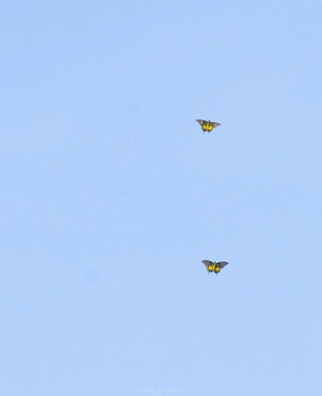 据调查团队介绍,此次观测地点位于近千米的山峰,现场记录的金斑喙凤蝶成虫形态特征清晰可辨:前翅金黄色斑带和后翅中央金黄色斑纹交相辉映,尾状突出细长且末端金黄,飞行时姿态优美灵动,符合“蝶中皇后”的典型特征。