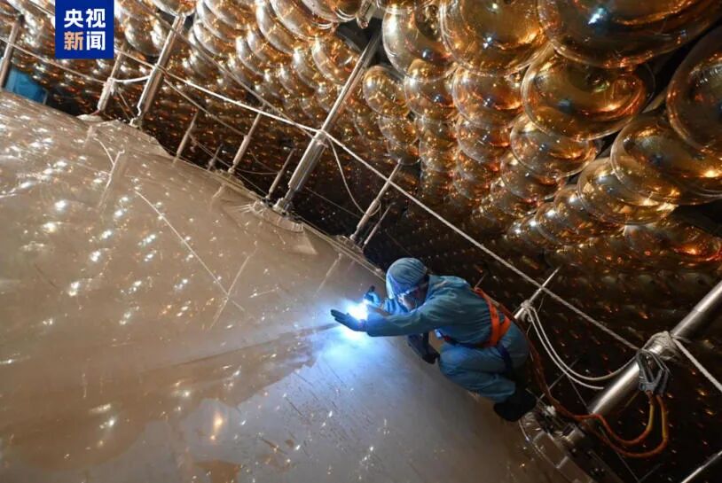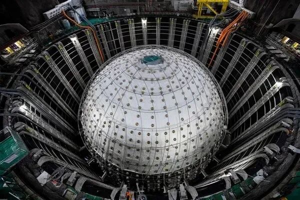 从2008年中国科学院高能物理研究所提出构想,到2013年获得中国科学院战略性先导科技专项(A类)以及广东省人民政府支持,再到2015年启动隧道和地下实验室建设,直至如今探测器成功运行,每一步都凝聚着科研人员的心血。在探测器主体建设完成后的灌注阶段,项目团队展现出了极高的技术水准。先是在45天内精准完成超过6万吨超纯水的灌注,将内外有机玻璃球的液位差严格控制在厘米量级,流量偏差不超过0.5%,确保了探测器主体结构的安全稳定。随后,又耗时半年将2万吨液体闪烁体精确注入直径35.4米的有机玻璃球内,并同步完成纯水置换,且满足了超纯水与液体闪烁体对超高洁净度、透明度和极低放射性本底的严苛要求。