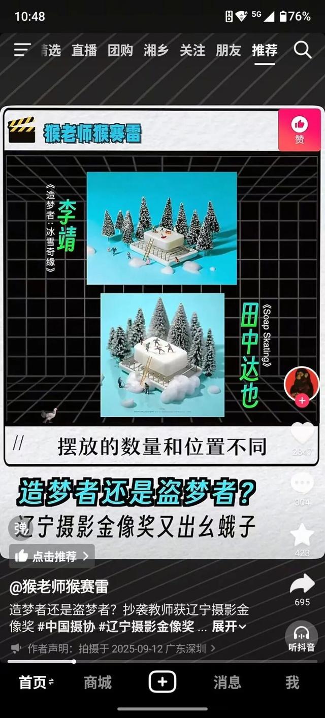 公开资料显示,李靖为辽宁省摄影家协会会员,现任辽宁传媒学院美术系系主任。相关图片显示,李靖的作品《造梦者:冰雪奇缘》与另一作者的作品十分相似。