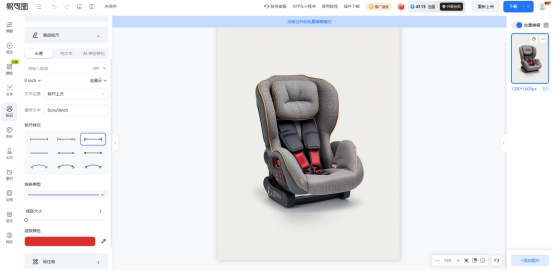 第四步:开始进行视觉美化,在系统提供的六种标尺样式和六种线条类型中依次点击尝试,挑选出最契合商品气质的一种,并根据图片底色修改线条颜色,确保标尺清晰醒目又不喧宾夺主。