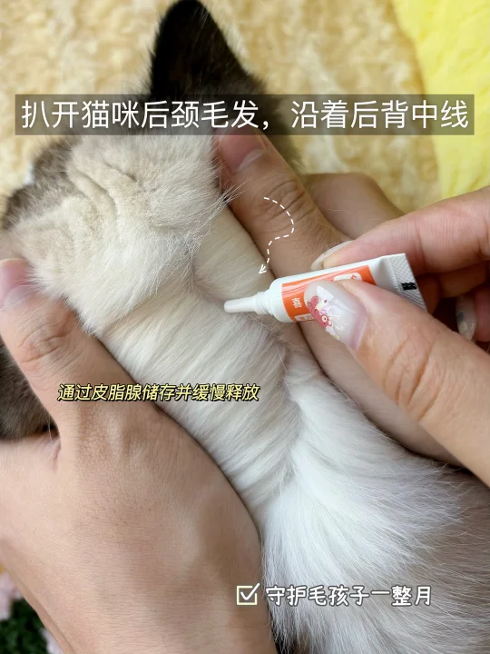 掰开猫咪后颈的毛发 沿着线滴就可以