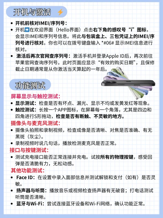 激活后无法无理由退货,务必逐项排查功能是否正常。