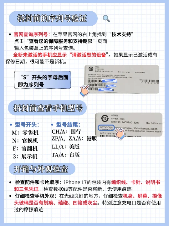 3. 官网查序列号:打开苹果官网“保障服务与支持期限”页面,输入刚才记下的序列号;若显示「未激活」且保修期限约365天,基本可判定为正品新机。