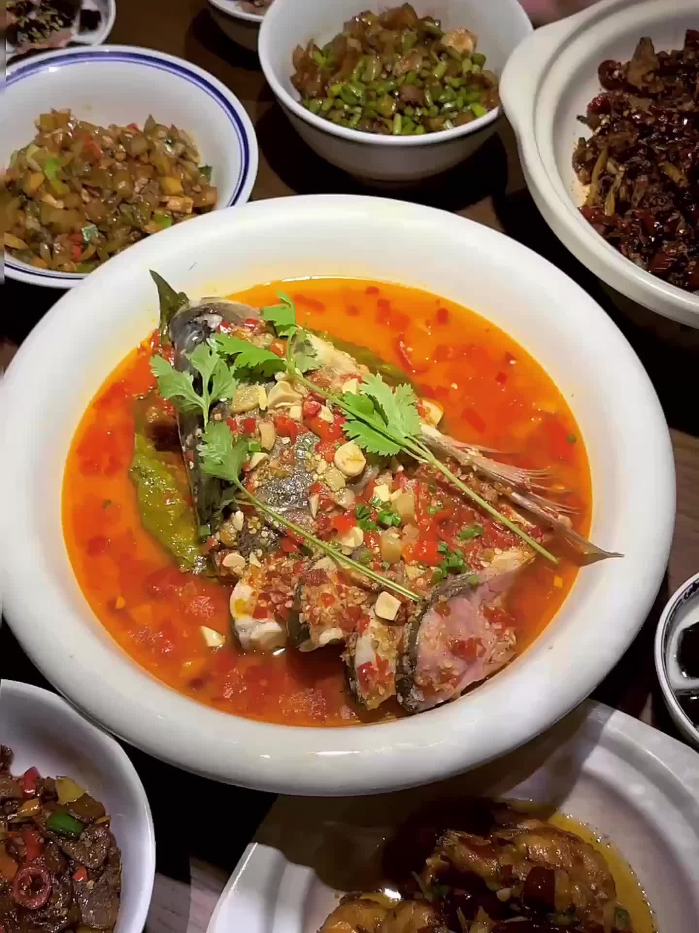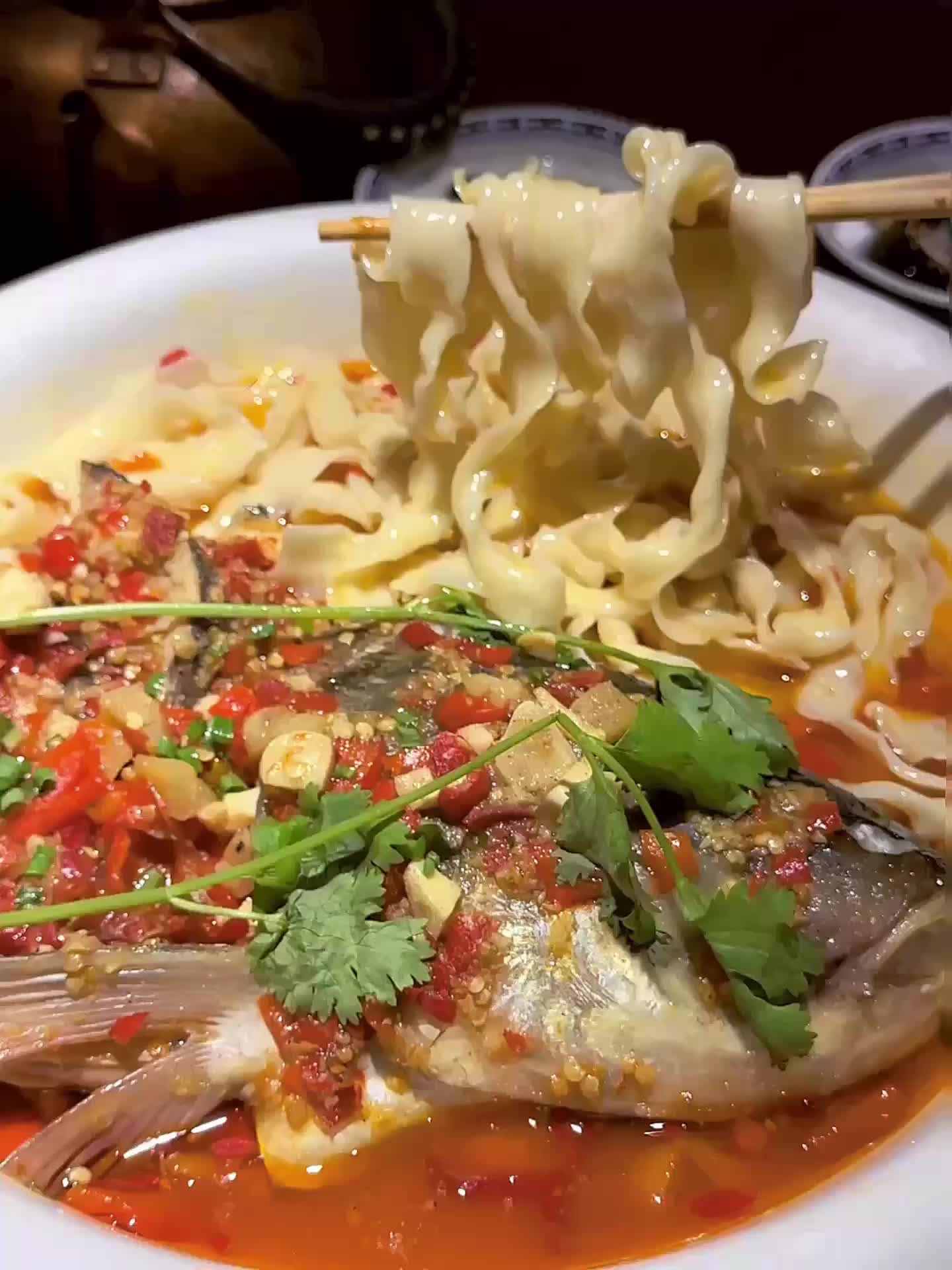 🔥金牌剁椒大鱼头配面:这鱼头也太大了吧!肉质嫩到一抿就化,五种辣椒熬的剁椒铺得满满,蒸完香辣味全渗进