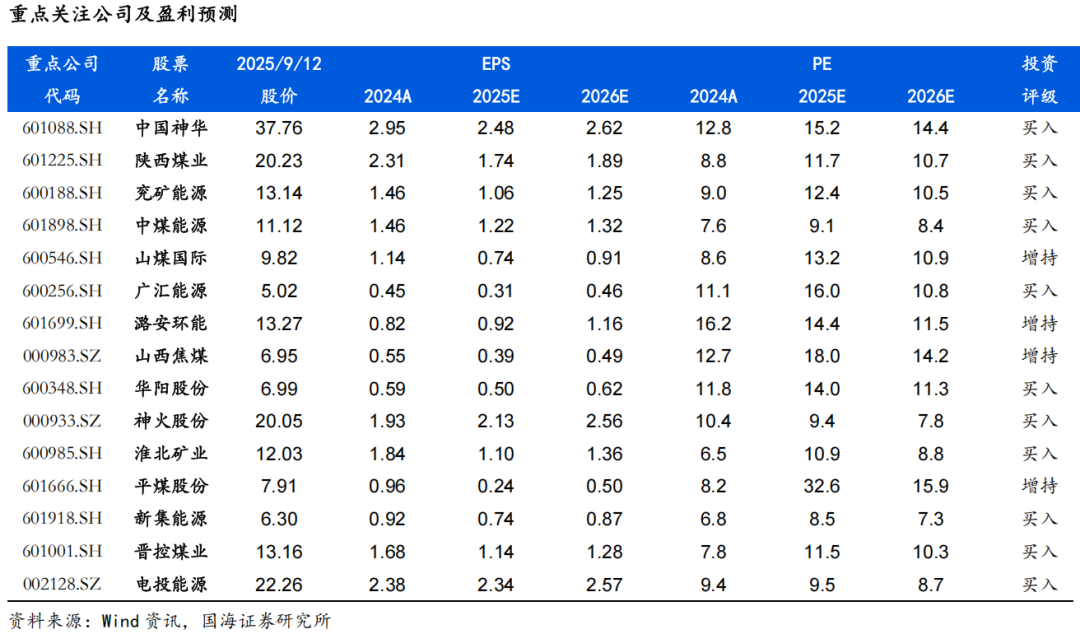美国关税新政落地对市场情绪构成一定冲击,市场寻求稳健性资产,煤炭高股息、现金奶牛的投资价值属性值得关注。同时年内国家能源集团、山东能源集团、中国中煤能源集团等多家煤炭央国企对旗下上市公司启动增持与资产注入计划,亦释放利好,彰显煤企发展信心、增厚企业成长性与稳定性。从大方向来看,煤炭开采行业供应端约束逻辑未变,需求端可能阶段性起伏波动,价格亦呈现一定震荡和动态再平衡,头部煤炭企业资产质量高,账上现金流充沛,呈现“高盈利、高现金流、高壁垒、高分红、高安全边际”五高特征。建议把握低位煤炭板块的价值属性,维持煤炭开采行业“推荐”评级。重点关注:(1)稳健型标的:中国神华、陕西煤业、中煤能源、电投能源、新集能源。(2)动力煤弹性较大标的:兖矿能源、晋控煤业、广汇能源。(3)焦煤弹性较大标的:淮北矿业、平煤股份、潞安环能、山西焦煤。
