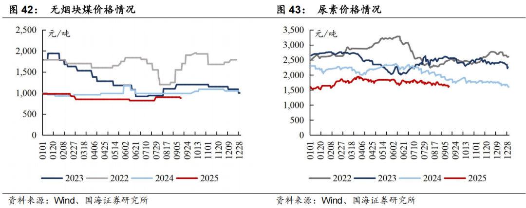 本周无烟煤市场小结及展望:产地方面,受国内重要活动影响,主产区无烟煤矿生产阶段性受限,开工率出现小幅下滑;需求端,化工企业开工整体稳定但局部限产持续,对原料煤补库意愿偏低,民用需求释放同样有限,市场交易活跃度不高,本周无烟煤价格环比下降。尿素方面,缺乏利好驱动,市场情绪偏谨慎,下游采购积极性不高,本周尿素价格环比下降。