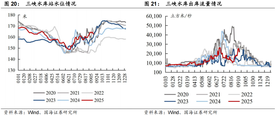 本周三峡水库出库流量环比上涨:截至9月13日,三峡水库出库流量为21900立方米/秒,周环比上涨3900.0立方米/秒,同比上涨186.3%。