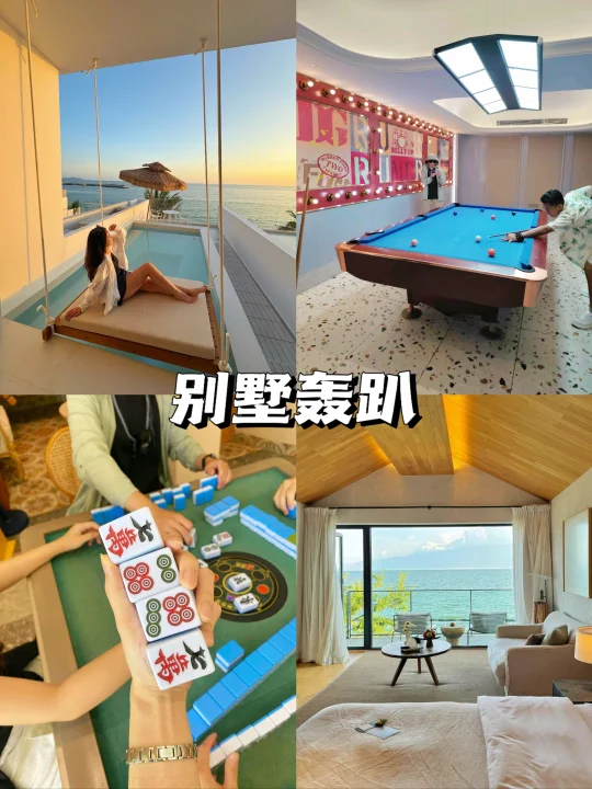 🏝海景别墅轰趴——麻将、桌游、街机全有,不想出门也能嗨,累了还能在露台吹海风看星星,惬意到爆🌌!