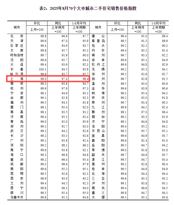 9月15日,国家统计局公布2025年8月份70个大中城市商品住宅销售价格变动情况。数据显示,8月份,各线城市商品住宅销售价格环比下降,同比降幅总体继续收窄。