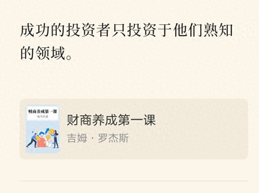 罗杰斯在书里说:“成功的投资者不会依据那些小窍门对投资选来选去。他们只投资于他们熟知的领域。”