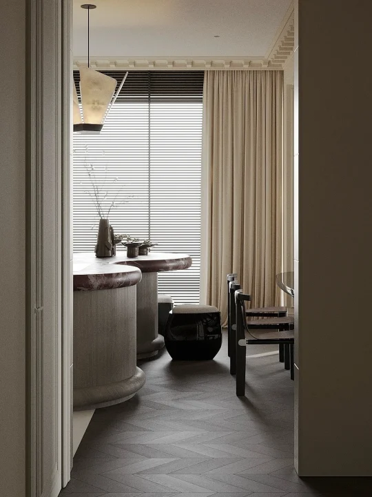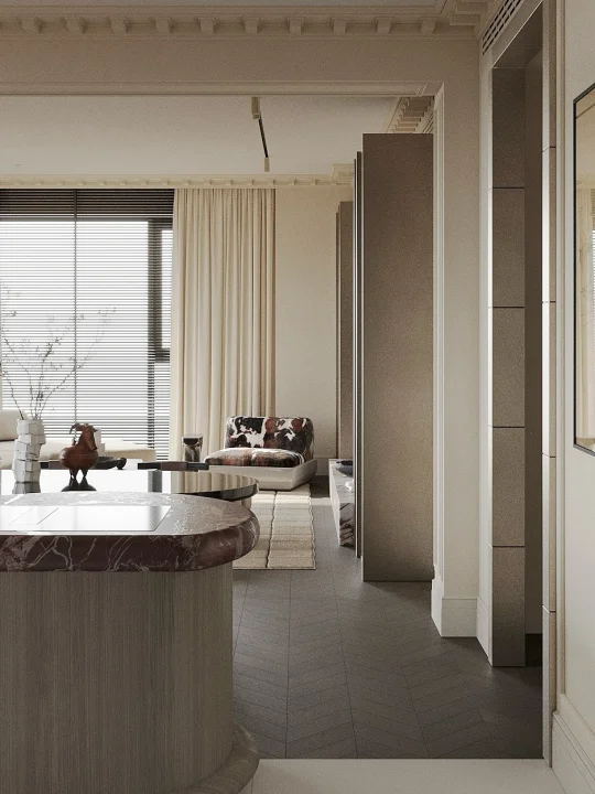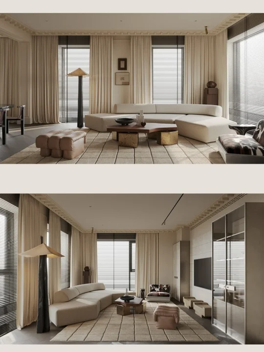 以低饱和暖调为底,复古元素(如装饰画、经典家具轮廓) 与时尚语言(简约线条、新颖材质)相互碰撞 既留存岁月韵味,又迸发当代潮流感,实现复古与时尚的优雅共生