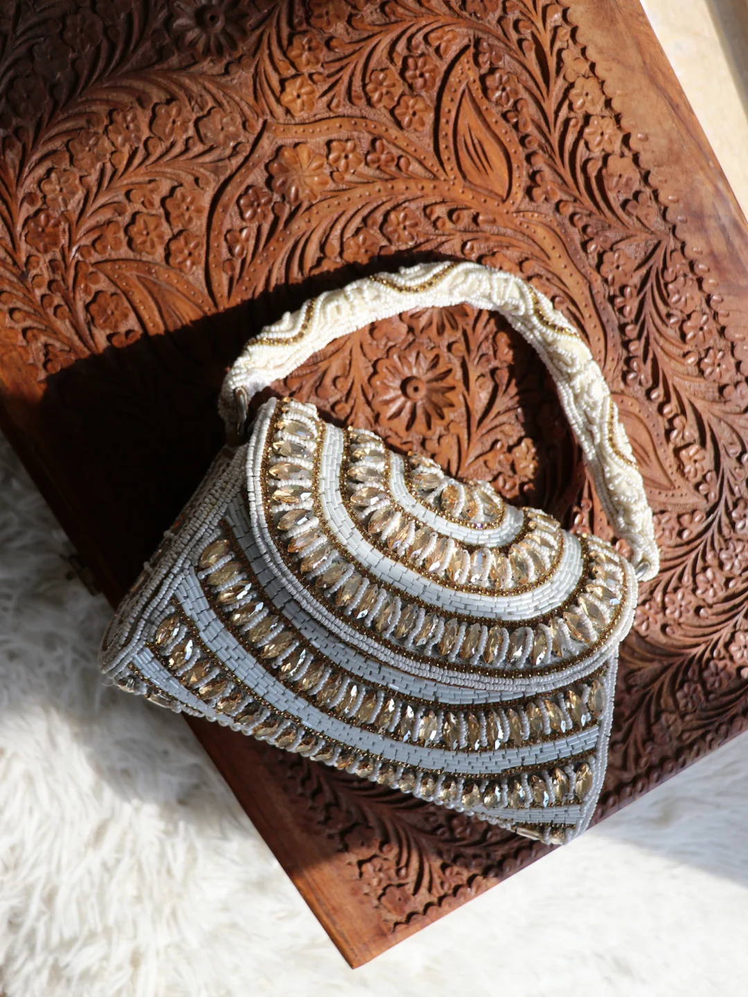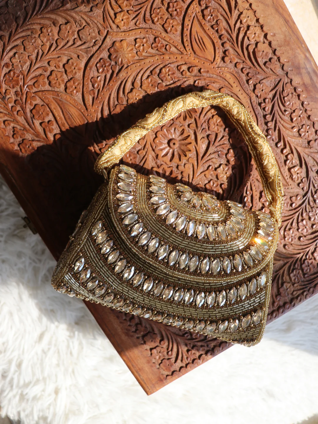 以前不理解为什么印度产的重工钉珠包,会是中东美女们的心头好。 直到拿到到手上,阳光下每一颗珠子都在折射,就像一颗闪闪发光的钻石~ 美已经不足以形容它的颜值,那种尊贵华丽的感觉似乎能划破一切平庸,真是独一无二美的体验!