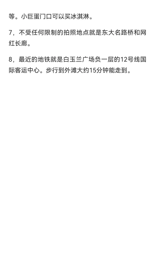 8,最近的地铁就是白玉兰广场负一层的12号线国际客运中心。步行到外滩大约15分钟能走到。