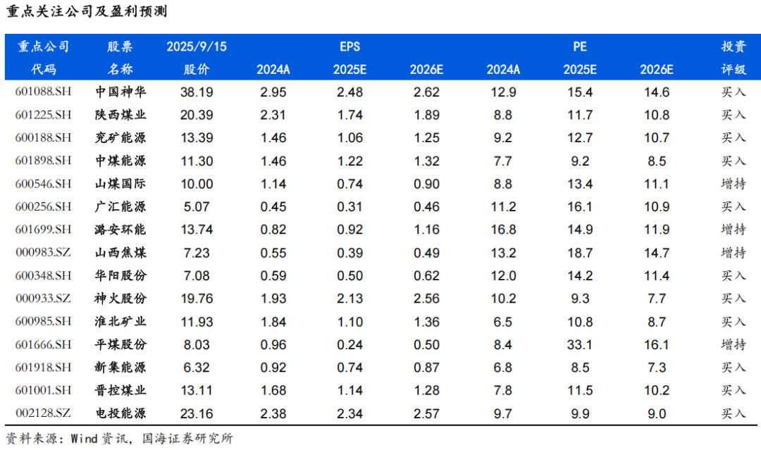 中期去看,美国关税新政落地对市场情绪构成一定冲击,市场寻求稳健性资产,煤炭高股息、现金奶牛的投资价值属性值得关注。同时年内国家能源集团、山东能源集团、中国中煤能源集团等多家煤炭央国企对旗下上市公司启动增持与资产注入计划,亦释放利好,彰显煤企发展信心、增厚企业成长性与稳定性。从大方向来看,煤炭开采行业供应端约束逻辑未变,需求端可能阶段性起伏波动,价格亦呈现一定震荡和动态再平衡,头部煤炭企业资产质量高,账上现金流充沛,呈现“高盈利、高现金流、高壁垒、高分红、高安全边际”五高特征。建议把握低位煤炭板块的价值属性,维持煤炭开采行业“推荐”评级。重点关注:(1)稳健型标的:中国神华、陕西煤业、中煤能源、电投能源、新集能源。(2)动力煤弹性较大标的:兖矿能源、晋控煤业、广汇能源。(3)焦煤弹性较大标的:淮北矿业、平煤股份、潞安环能、山西焦煤。