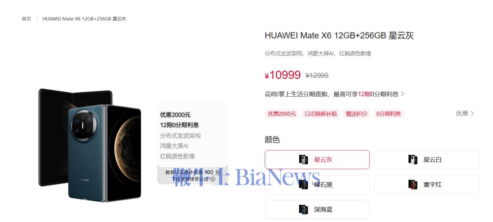 其中,华为MateX6最高降价2000元,目前售价10999元。