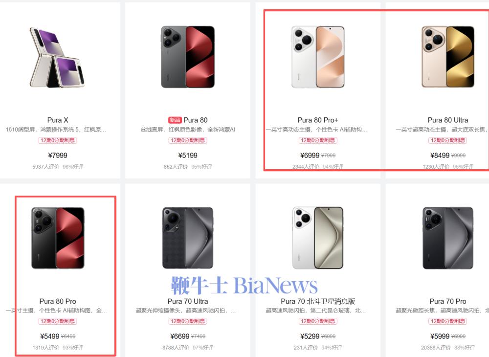 Pura80系列手机最高降价1500元,Pura80Pro售价5499元,Pura80Pro+售价6999元,Pura80Ultra售价8499元。
