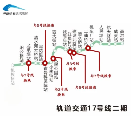 1️⃣地铁17号线二期起于机投桥站,止于高洪站,全长24.76公里。
