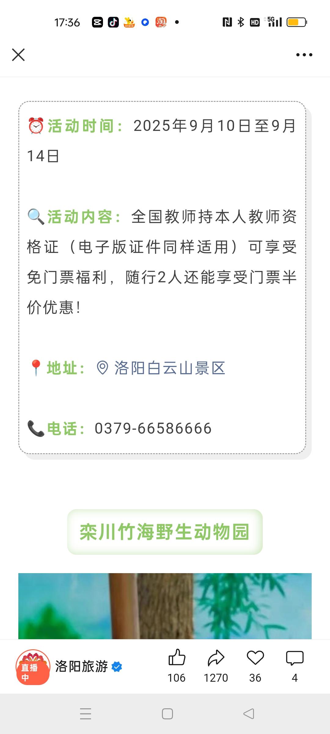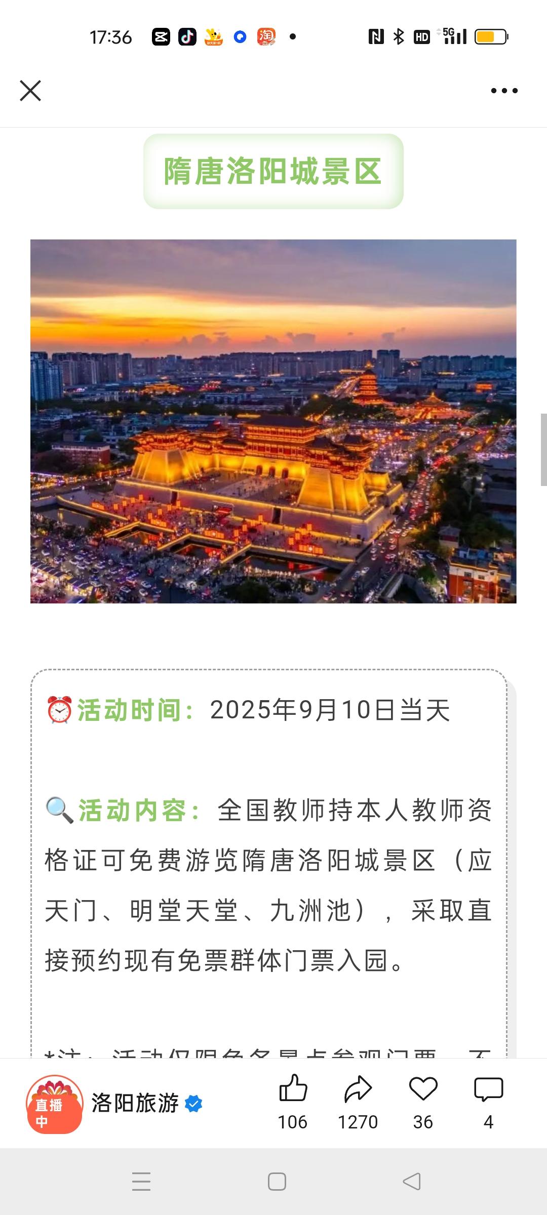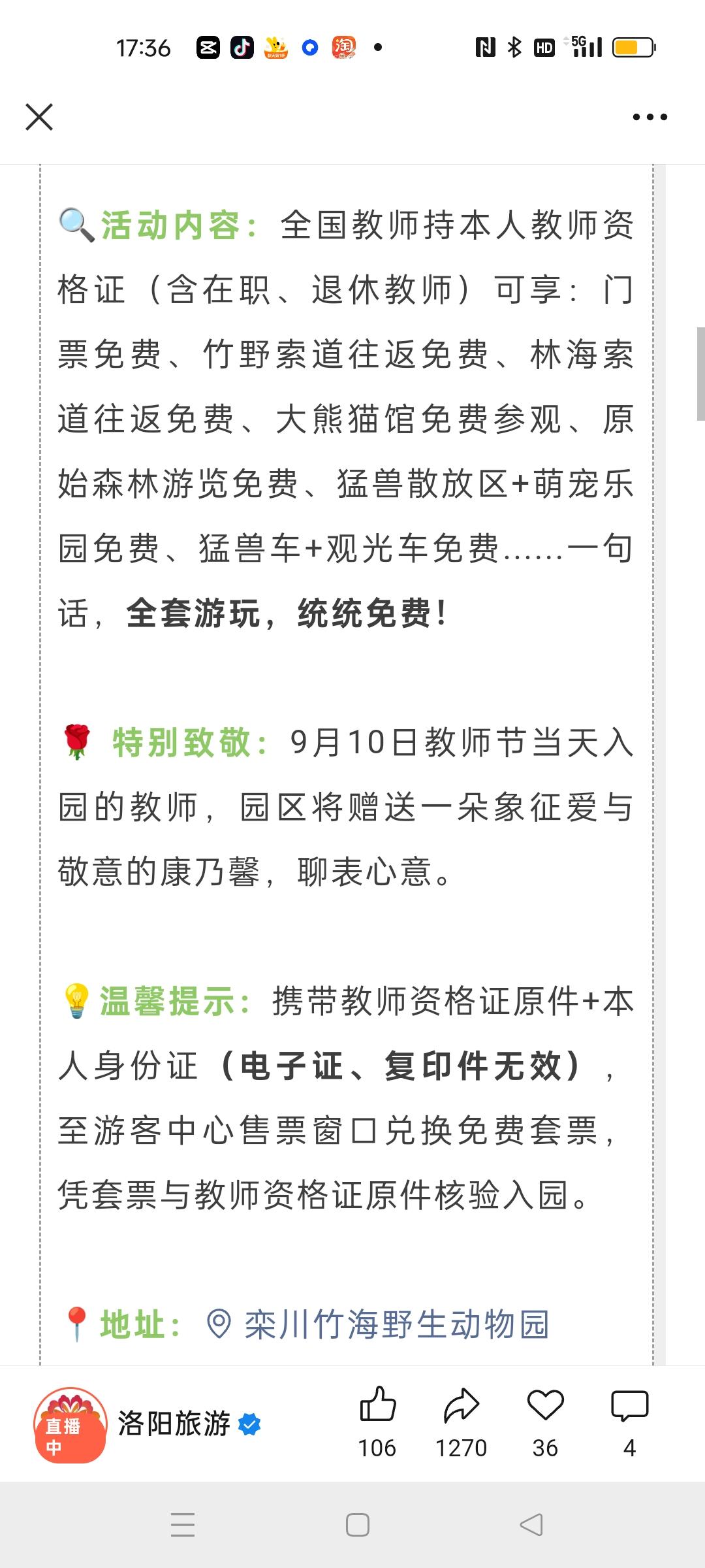 洛阳旅游景区对全国教师的优惠你收到了吗?一支粉笔,书写人生几十载三尺讲台,孕育桃李满天下 洛洛祝所有的老师节日快乐一直以来默默奉献的你们辛苦啦 为感谢师恩洛阳多家景区纷纷推出 免门票、优惠游等福利 (部分活动持续至周末)向辛勤耕耘的老师们送上最诚挚的祝福。